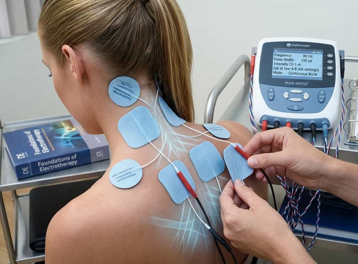 Reizstrom und Ultraschall zur Schmerzreduktion und Durchblutungsförderung.